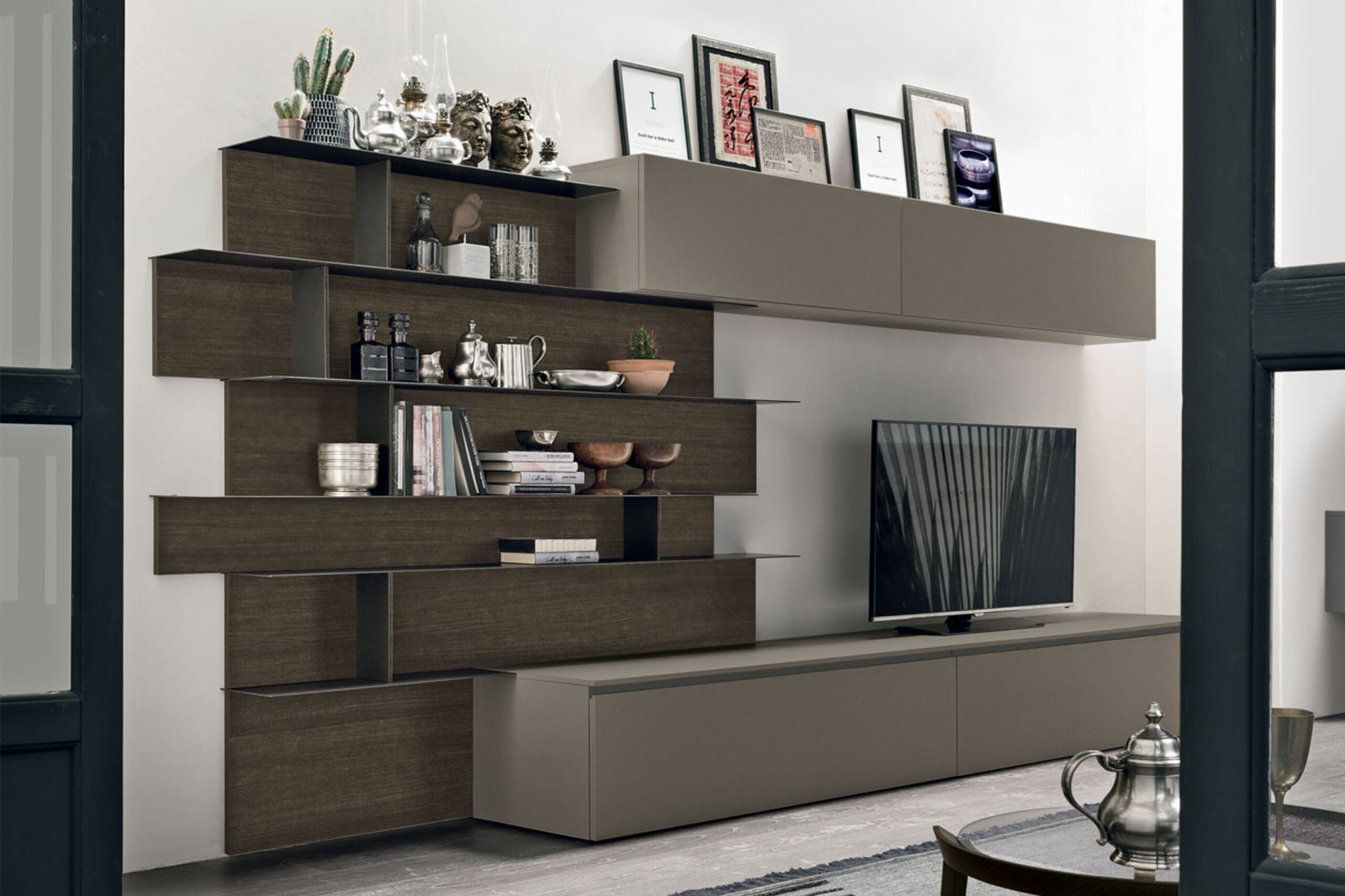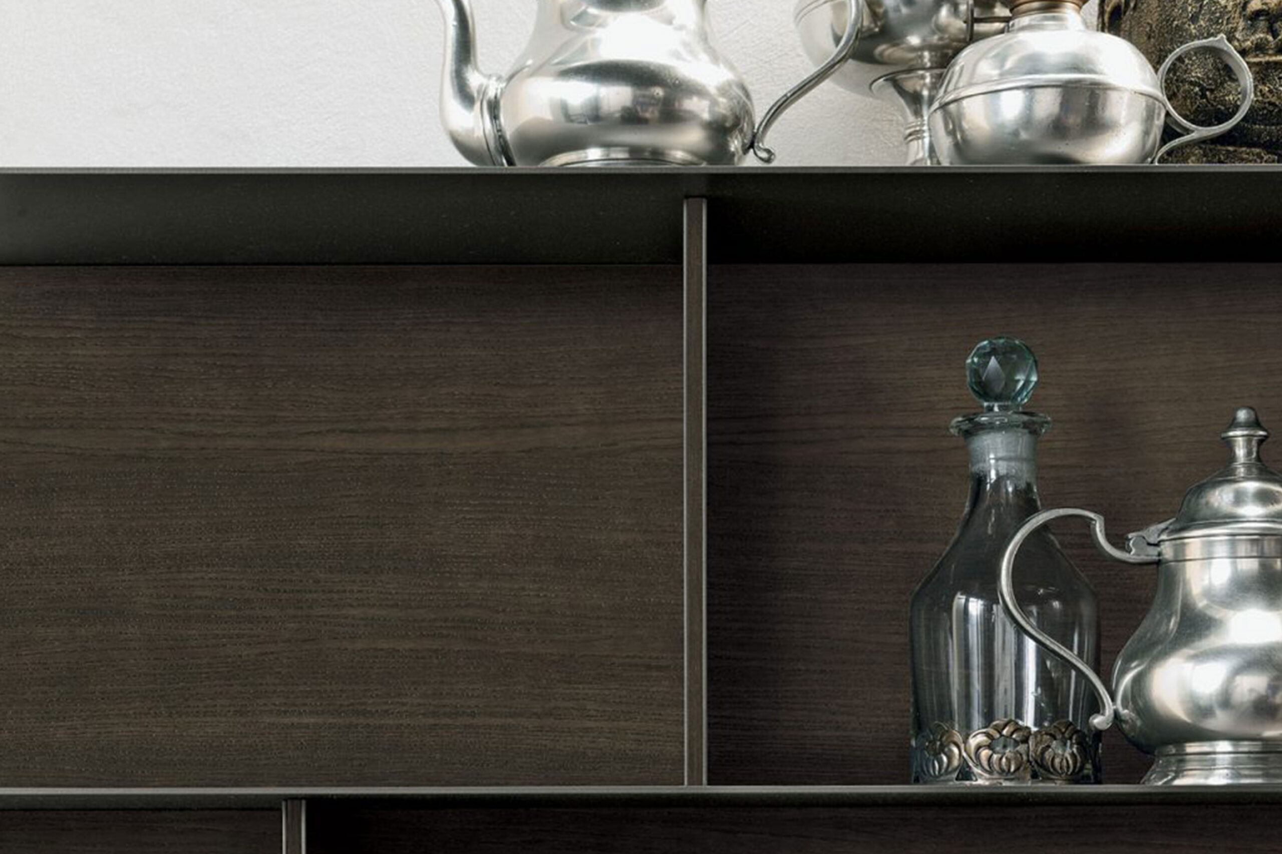 Krea stands for creativity, by name and by nature: the wall panelling- cum-bookcase is designed to create a great variety of arrangements. The dividers – in wood and metal – are its distinctive feature.